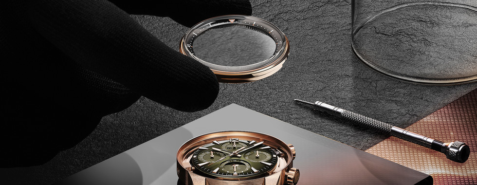 漆面錶盤採用全新海洋灰色,流露神秘氣息,令人聯想起陰雲密佈的蒼茫海面;雙色漸變潤飾在視覺上更加深邃立體,洋溢動感活力,更塗覆了35層色漆。腕錶的各項顯示採用賞心悅目的不對稱佈局,6時位置設有第二時區小錶盤,動力儲存顯示則位於錶盤左上角。橙色元素吸引目光注視重要信息指標,與海洋灰色錶盤背景形成鮮明對比,更為整體佈局增添活力。