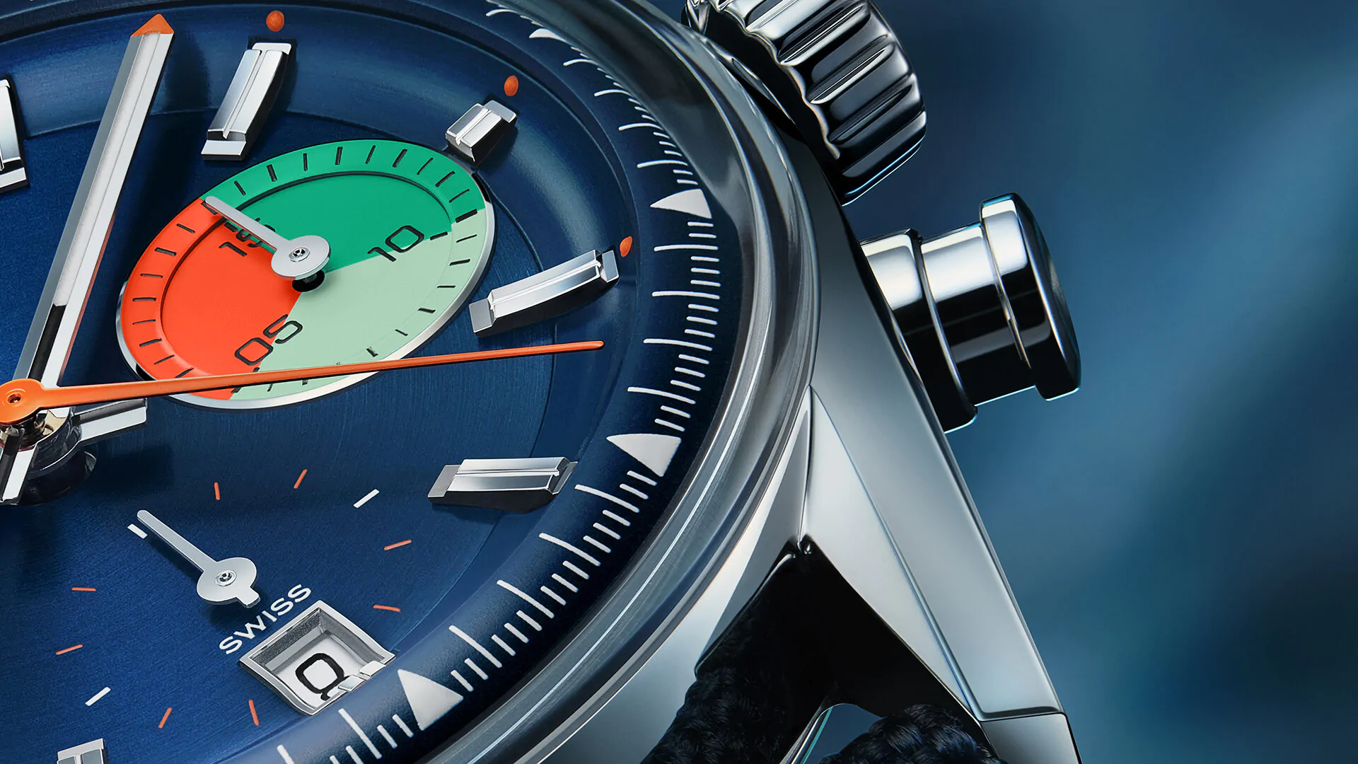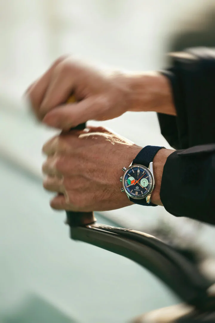 全新 TAG Heuer Carrera Skipper 腕錶重新演繹了這一標誌性色調。主錶盤為標誌性藍色,靈感源自大海。12 小時計時盤採用無畏青色,而 15 分鐘賽舟計時盤則分為三部分:深綠色、湖水綠和橙色。Skipper 腕錶結合了圍繞外弧形凸緣每隔 5 分鐘排列的三角形標記和亮橙色中央秒針,將現代技術與永恆設計融為一體。一如所有 Tag Heuer 泰格豪雅運動腕錶,Skipper 腕錶為卓越性能而生,配備 TH20-06 機芯,雙向上鍊系統和 80 小時動力儲存。全新腕錶為 TAG Heuer 泰格豪雅與遊艇世界之間的關係注入了新的活力。